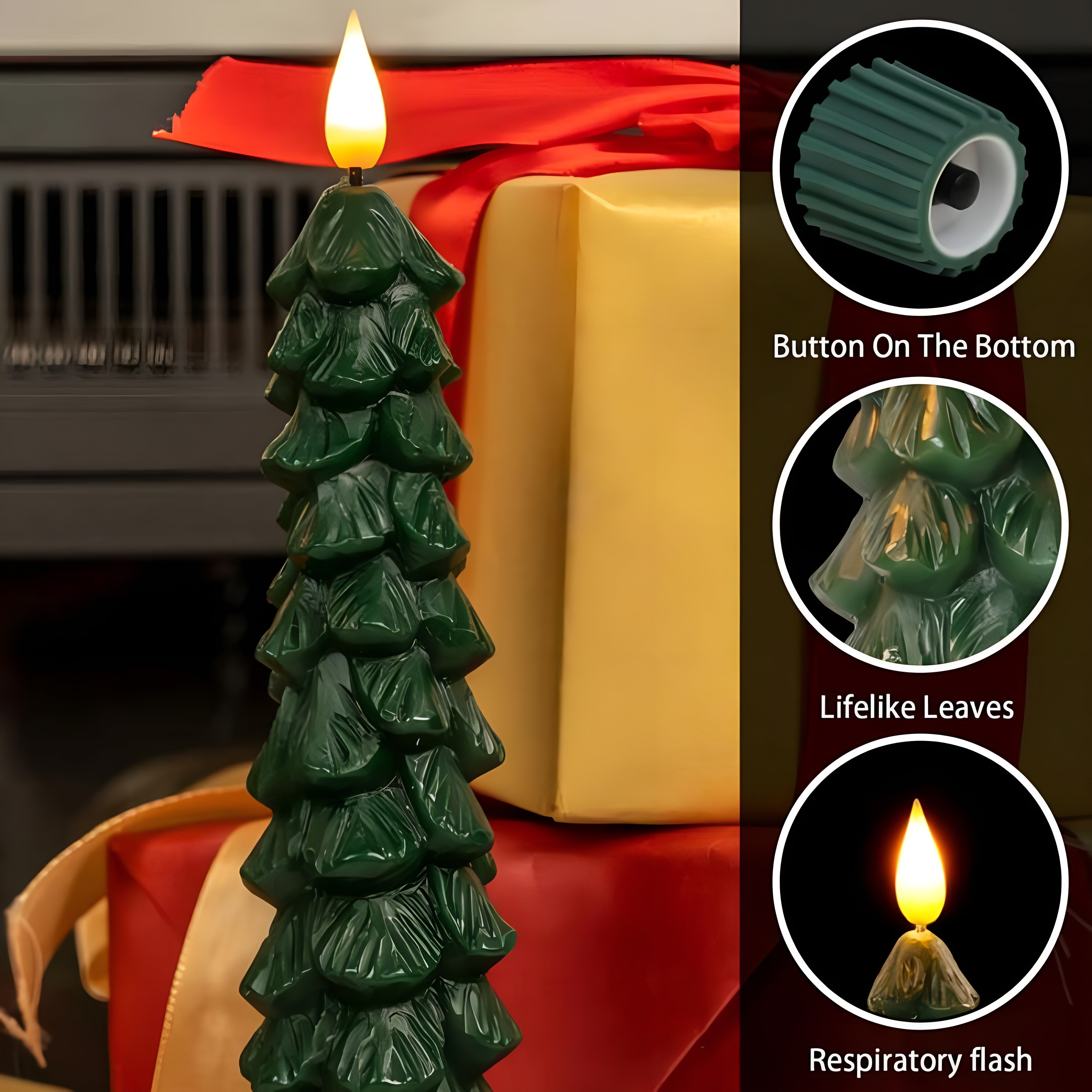 Elevate your holiday décor with these Christmas Tree Shaped Flameless LED Candles With Remote Control Designed with lifelike tree details and a soft flickering flame, these candles add a cozy, festive ambiance to any setting. Safe and convenient, they include a remote control for adjustable brightness, timer settings, and flicker modes.