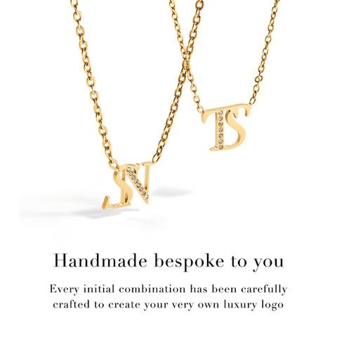 Meticulously crafted, the necklace features two dainty initials of your choice, adorned with finely set crystals that catch and reflect light, adding a subtle shimmer. Each initial pendant hangs delicately, ensuring they complement each other without overshadowing.