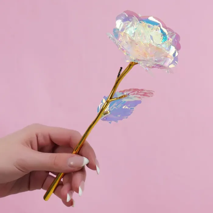 This Single Decorative Rose Ornament With Luminous Petals For Valentine Day presents a sculpted floral display intended for indoor decorative settings. The structure is static, making it suitable for use on shelves, counters, or other flat surfaces. Crafted to represent a symbolic flower in a contained format, the ornament serves as an artistic representation of seasonal themes.